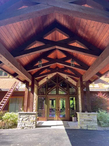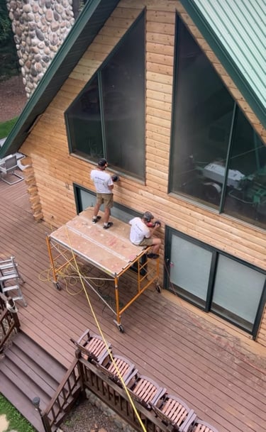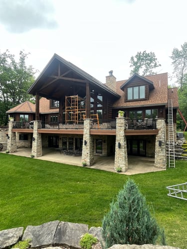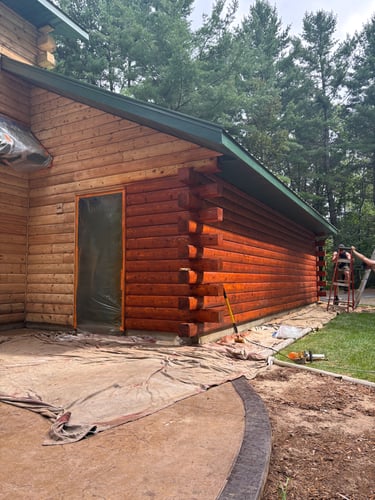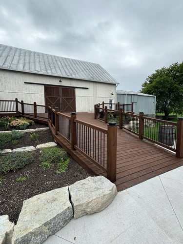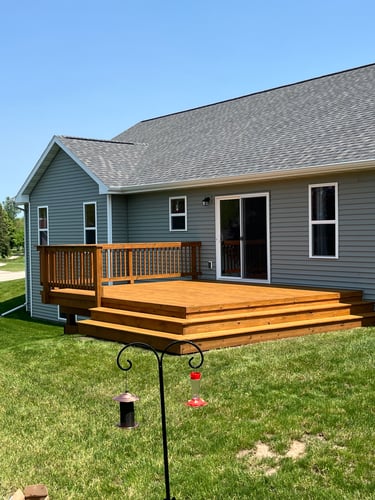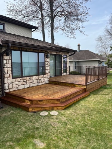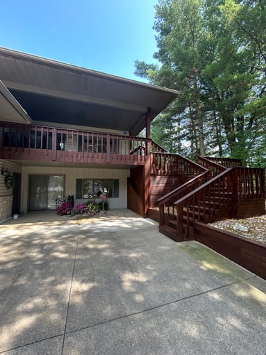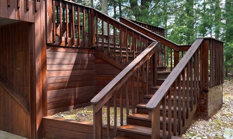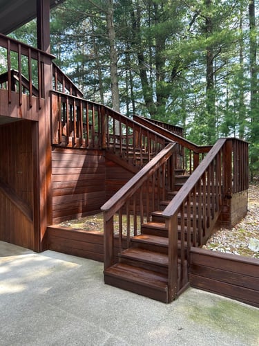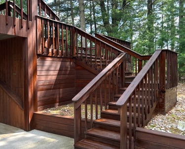 Restored this wooden deck with a rich, protective stain that highlights the natural grain and extends its life.